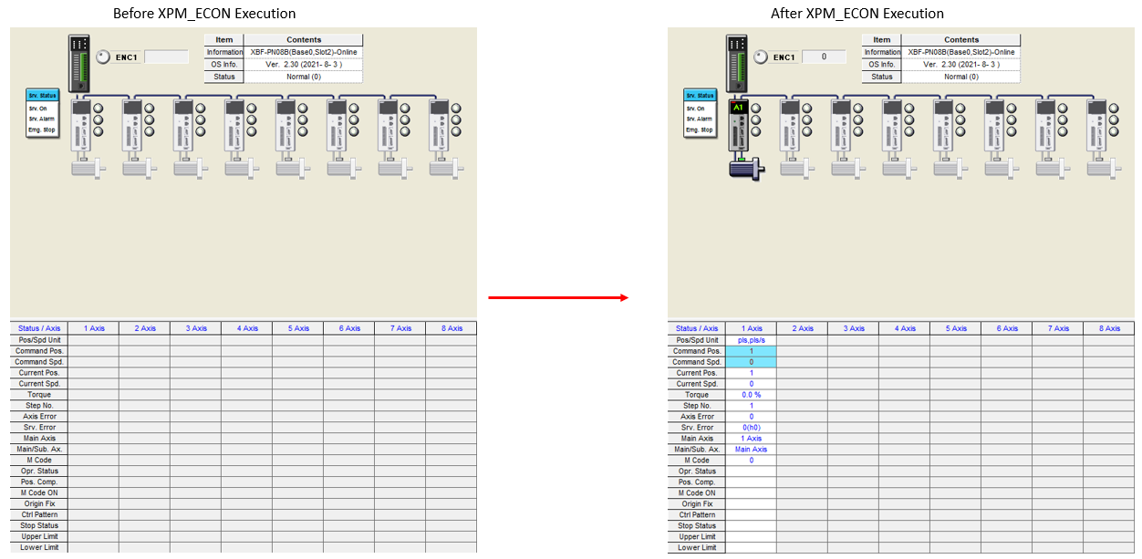 XPM_ECON will return error number 5017 if the node number order of the EtherCAT network doesn’t match the XG-PM configuration.
