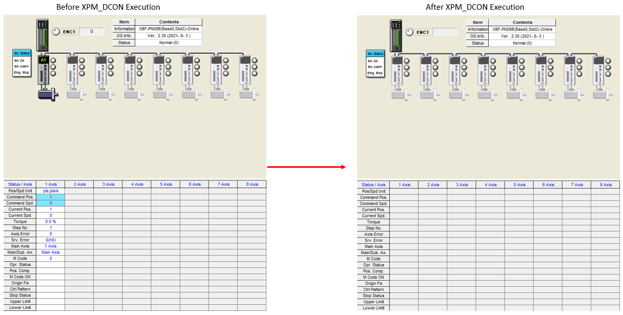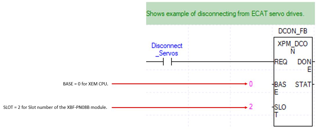 The modules can also be disconnected from the EtherCAT servo drives using the XPM_DCON function block.