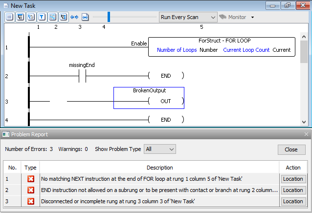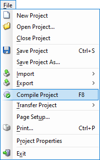 Compile Project is used to Compile a new or edited project before saving it to disk or transferring to a CPU.