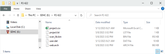 Note: The Project.lst and Web.arch files only apply to projects with a P2-622 or newer CPU with built-in display.