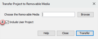 To Transfer a project to a Removable Media, select "To Removable Media" from the Transfer Project menu. A Transfer Project to Removable Media window will be displayed. Choose the Removable Media to transfer the project to by entering the Removable Media location or select the Browse button to display a window to Select the Removable Media.