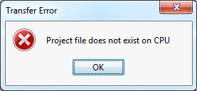 Note: Without the project.adpro file, once the files are transferred to the CPU, neither the software nor Removable Media will be able to retrieve the project, an error will be generated as shown below: