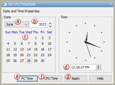 Selecting Set CPU Time/Date will display the Set CPU Time/Date window as shown below.