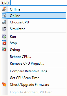 Select the Online menu item from the CPU Menu of the Main Menu.