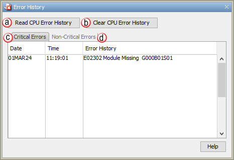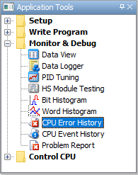 Select the CPU Error History from the Monitor & Debug topics of the Application Tools panel.