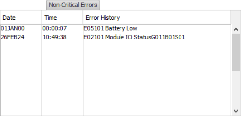 Note: The Error History can also be accessed through the Menu on the front panel LCD display of the CPU. Another option is to select Log System Errors in the Data Logger set up. This allows errors to be logged to a USB drive attached to the CPU and logs as many errors as the drive memory allows.
