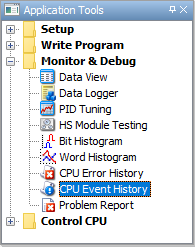 Select CPU Event History from the Monitor & Debug topic of the Application Tools panel.
