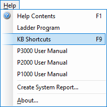 Select Keyboard Shortcuts from the Help Menu located on the Main Menu.