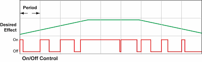 While continuous Control can be smooth and robust, the cost of the Loop components (such as actuators, heater amplifiers) can be expensive. A simpler form of Control is called time-proportioning Control or ON/OFF Control. This method uses actuators that are either ON or OFF (no in-between). Loop components for ON/OFF-Based Control systems are lower cost than their continuous Control counterparts.