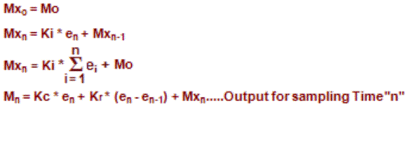 In the formula below, the sum of the Integral Terms and the Initial Output are combined into the Bias Term (Mx). Using the Bias Term, we define formulas for the Bias and Control Output as a function of sampling time: