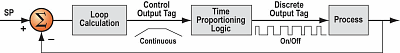 Note: Some processes change too fast for Time Proportioning Control. Consider the speed of your process when you choose this Control method. Use continuous Control for processes that change too fast for Time Proportioning Control.