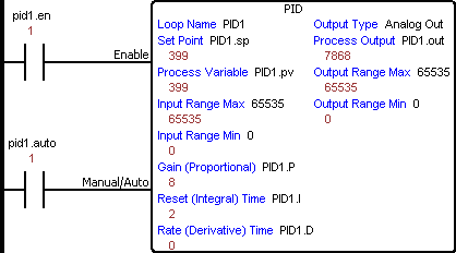 Note 3: Using a Floating Point tag(s) for the P, I, & D fields allows tighter precision for maximum control.