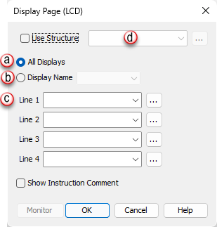 When Display Page Instruction is selected the window shown below opens with defaults shown.
