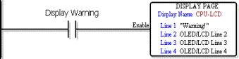 In this instance, the Display Warning Bit is Enabled and prompts the Display Page to display WARNING! on Line 1 and the Data/Text found in the Line 2 – Line 4 Tags.