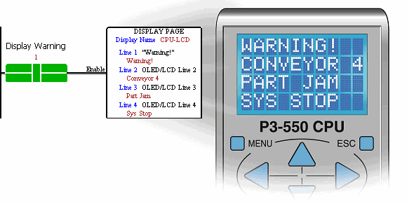 Display program-triggered messages on the OLED/LCD screen of one or more P Series (P3 & P2) CPUs or Remote Slaves.
