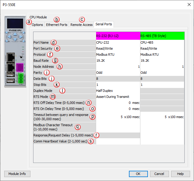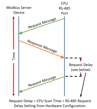 - Response/Request Delay (RS-485 Only): Used when the CPU is a Modbus RTU Server or Client on the RS-485 Port.