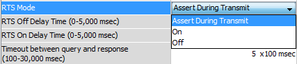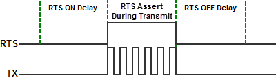 - Assert During Transmit: Make the RTS signal turn ON in the time between the RTS ON delay and RTS OFF delay (Only available in Half Duplex Mode).