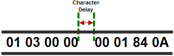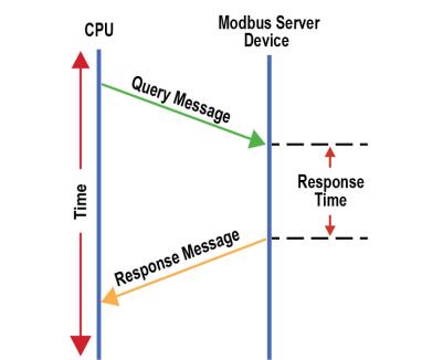 - If acting as a Server, upon receiving a Modbus Request, the CPU will wait for the time period specified in this field before sending a Response. This can be used with slow clients that need extra time to change from sending to receiving.