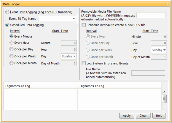 Data logging is set up in the Productivity Suite Programming Software Data Logger configuration window. See the Data Logger help file topic for setup instructions.