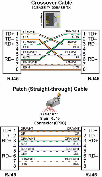 Crossover cables can be used to directly connect two endpoint Ethernet devices such as a PC network interface card and the CPU. Patch (or Straight-through) cables are used to connect an endpoint Ethernet device to an Ethernet switch.