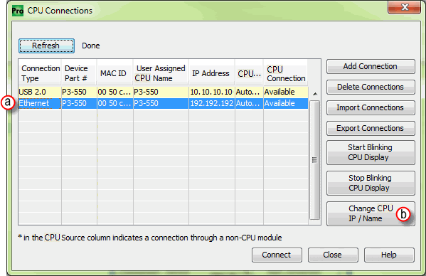 - Select the “Change CPU IP/Name" button.
