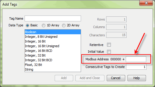 Modbus address to a tag