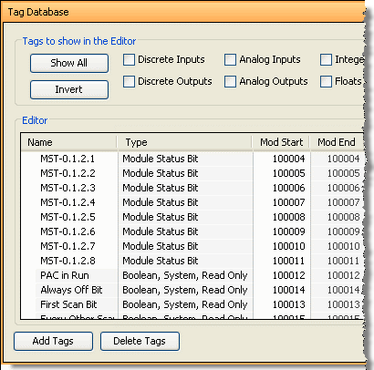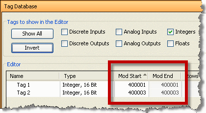 The right most value that you see in the ModStart field is the address offset (range is from 1 - 65535). You can accept the value that is pre-filled for you or the value can be changed. The software automatically pre-fills the address offset with the next available address.