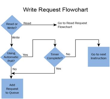 Write requests will fill the queue much faster than read requests. That's why it is advisable to carefully choose when doing write requests whether to use the Automatic Poll feature or to manually send write requests only when needed (data to write has changed). When designing a system, it is important to know the total time it takes to send a request and get a reply for each target device. The Poll time should be longer than this time. The longer the poll time can be, within tolerance of the application, the better the overall network performance. So, for efficiency in programming and for the best possible performance for the system, conservative poll rates should be used when utilizing the Automatic Poll feature.