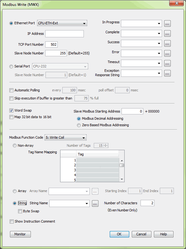 Modbus Client/Master Support (Using MRX and MWX Instructions) Continued |