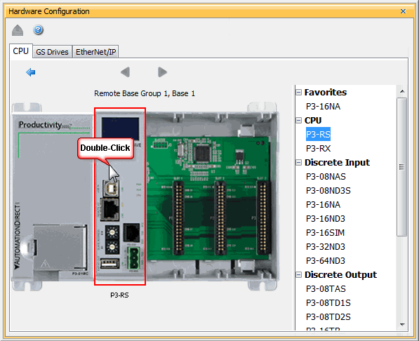 The P3-RS module is configured using the setup tools found in the Hardware Configuration window.
