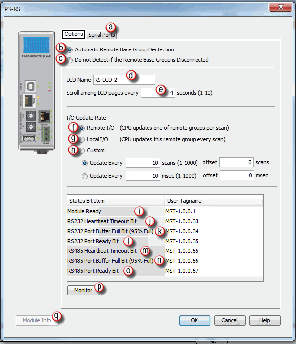 - If the P3-RS is selected as Do not Detect if the Remote Base Group is Disconnected, then the RS-485 Port Ready Bit will be false until the P3-RS is fully booted up and in run.
