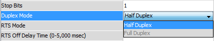 - Assert During Transmit: Make the RTS signal turn ON in the time between the RTS ON delay and RTS OFF delay. (Only available in Half Duplex Mode)
