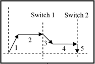 1. Accelerate to First Speed. 2. Travel at First Speed until Edge 1 of Switch 1 occurs. 3. Decelerate to Second Speed. 4. Travel at Second Speed until Edge 2 of Switch 2 occurs. 5. Immediately Stop and optionally set the position to a user specified value. Note: In Mode 1, depending on direction of travel, if Switch 2 is made prior to Switch 1 the move will halt. Mode 2Move to Switch 1 and Halt.