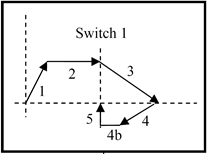 1. Accelerate to First Speed. 2. Travel at First Speed until Edge 1 of Switch 1 occurs. 3. Optionally set the position to a user specified value at Switch 1. and Decelerate to a Stop. Mode 4 Move to Switch 1 and Return.