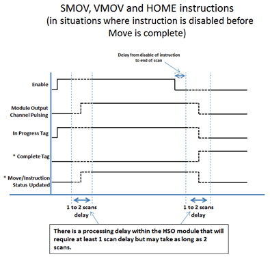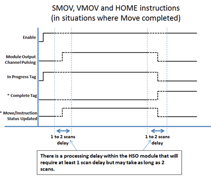 Note: The Feedback received for the Status tags can take one or more scans to register within the CPU depending on the CPU scan time and processing delays within the HSO or AMC module Instruction Rules