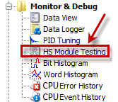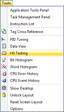 Note: To enable the HS Testing Utility, the Run/Stop switch on the CPU must be in stop or select stop mode from the GUI.