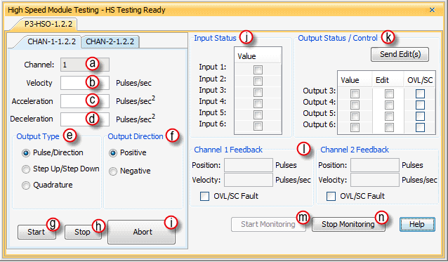 Note: Output, physical and position limits set in the hardware configuration are not active while using this utility.