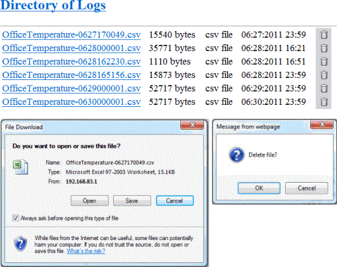 The USB pen drive directory (seen below) can be used for data logging and all of the .csv files are available to view, save or delete.