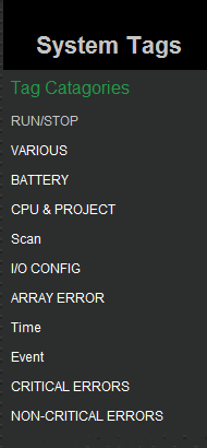 The read-only system tags that are available for viewing are broken down into the following categories: