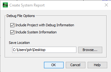 Step 3: Leave Include Project with Debug Information checked to include the project and choose a location to store the .zip file, then hit OK.