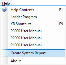 Step 2: Select Create System Report from the Help Menu located on the Main Menu.