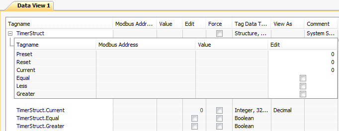 Structures can be viewed in Data View as an entire data type or each element can be specified.