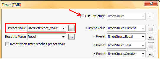 The newly created user tag (userDefPreset_Value) is now used along with the other structure elements. Since the instruction no longer uses all of the structure elements, the instruction header will have the structure name removed.