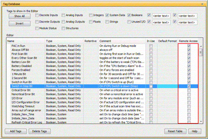 The Remote Access must be checked for any tag you wish to view in the tagname database also.