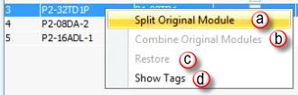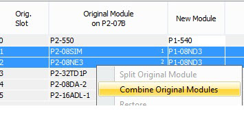 Example: A 32 Point module is being split into (4) 8 point modules. This is accomplished by selecting split (4) times.Combine Original Modules: Allow multiple smaller count modules to be combined into a larger count module.