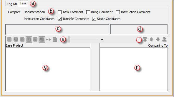 There are two sections to Project Compare, TagDB and Task. This section covers the portion shared by the two different compares. TabDB and Task Compare are covered in more detail in the following sections.
