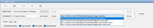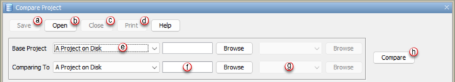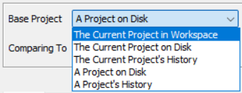 - Base Project: Users can compare a project on disk, the currently open project, or a historical version from the repository if version control is enabled. .