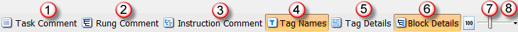 Block Detail: Allows the user to view or hide the details within the Function Block Instructions. This option applies to all Block Instructions for the selected tasks.