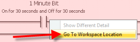 If you are using the Current Project in Workspace for the Base Project in the comparison, an option will be available by right clicking on an instruction and selecting Go To Workspace Location. This will take you to the Instruction Location in your currently open Ladder Project file.