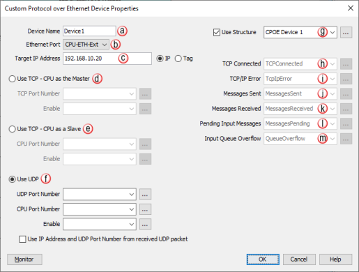 If the CPoE Device is set to Use TCP – CPU as the Master or Use UDP,